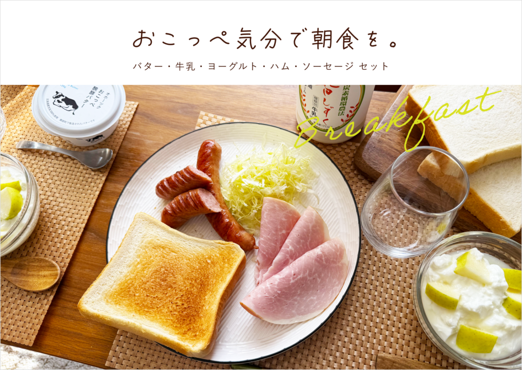 焼くだけ・のせるだけで特別感が出る、おこっぺらしい美味しさを楽しめる朝食セットです。
