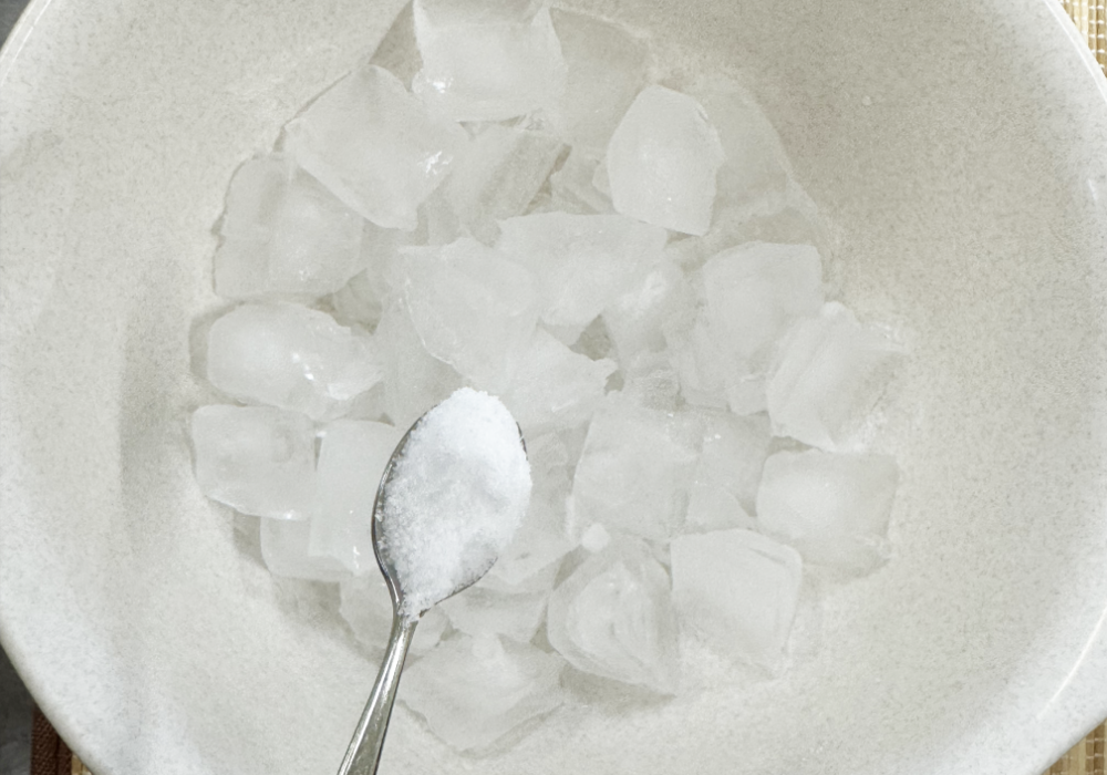 ②:氷の分量の2~3%ほどの塩を振りかけます。