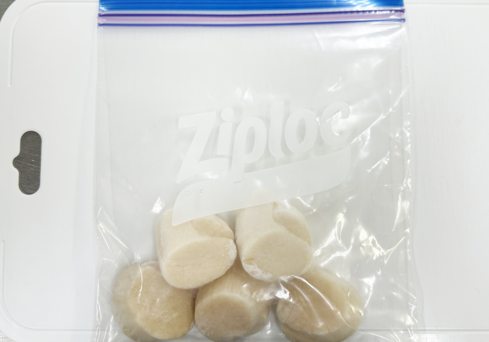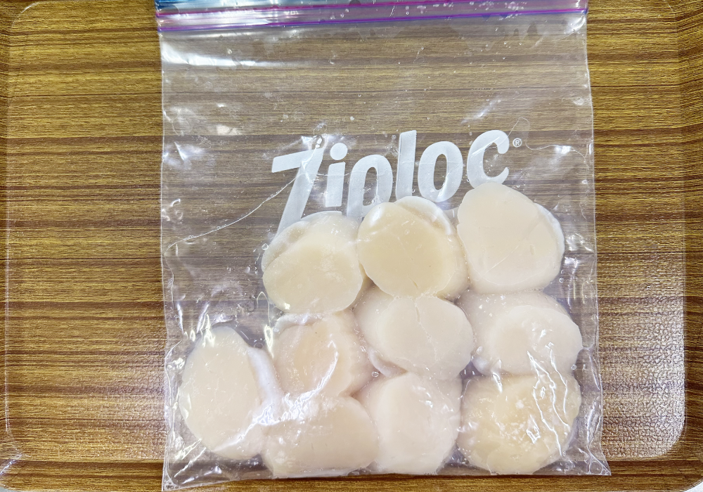 ①:使う分だけの冷凍ホタテをジップロックなどの保存袋に移します。