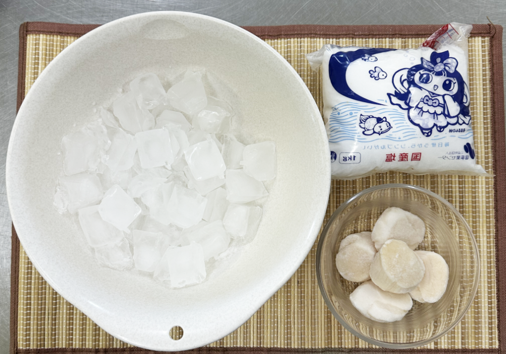 ・ホタテの解凍は、塩と氷でゆっくり解凍!