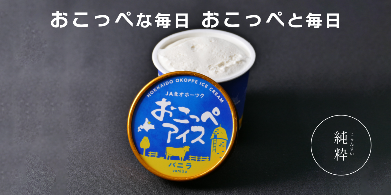 おこっぺアイスは乳脂肪分高めの濃い味とコクが自慢の、厳選されたミルクを100%使用。