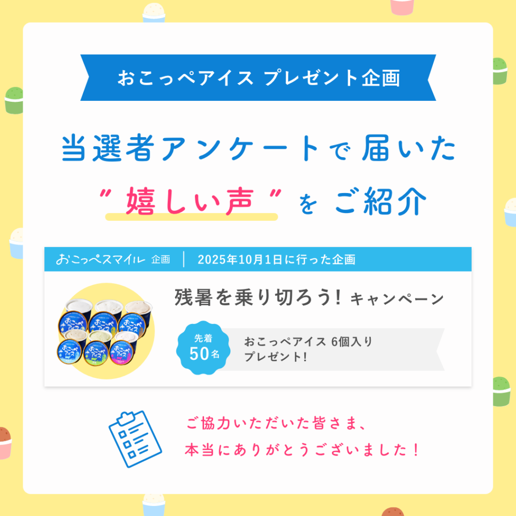 • 【記事更新!】おこっぺアイス プレゼント企画|当選者アンケートで届いた “ 嬉しい声 ” をご紹介