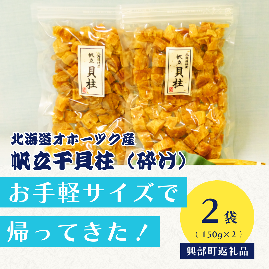 【ホタテ干貝柱(砕け)150g×2個セット】大人気返礼品がお手軽サイズで帰ってきた!
